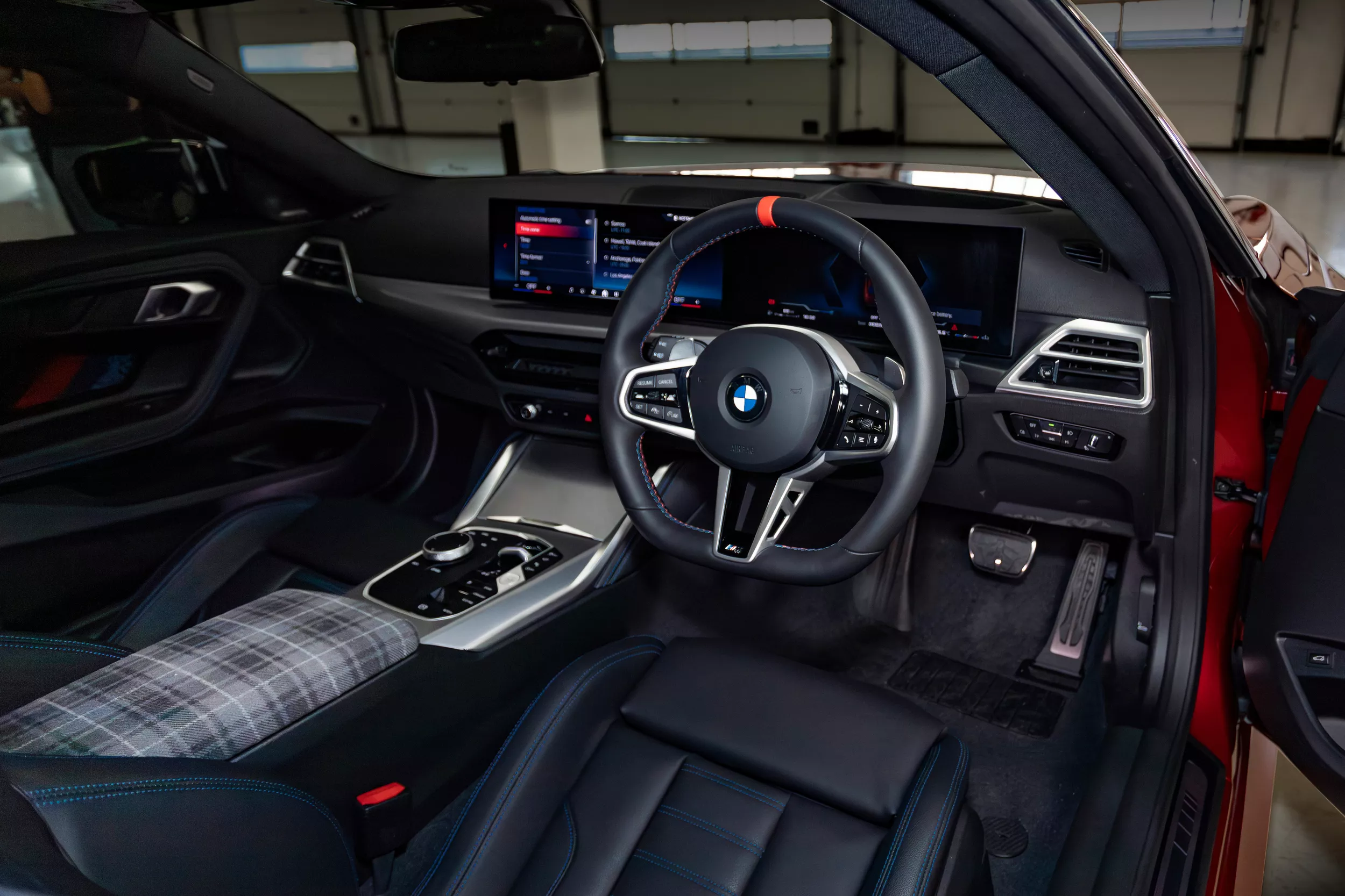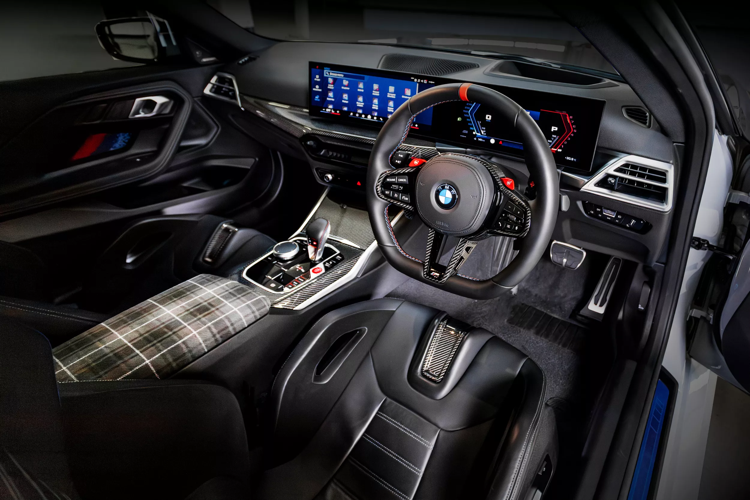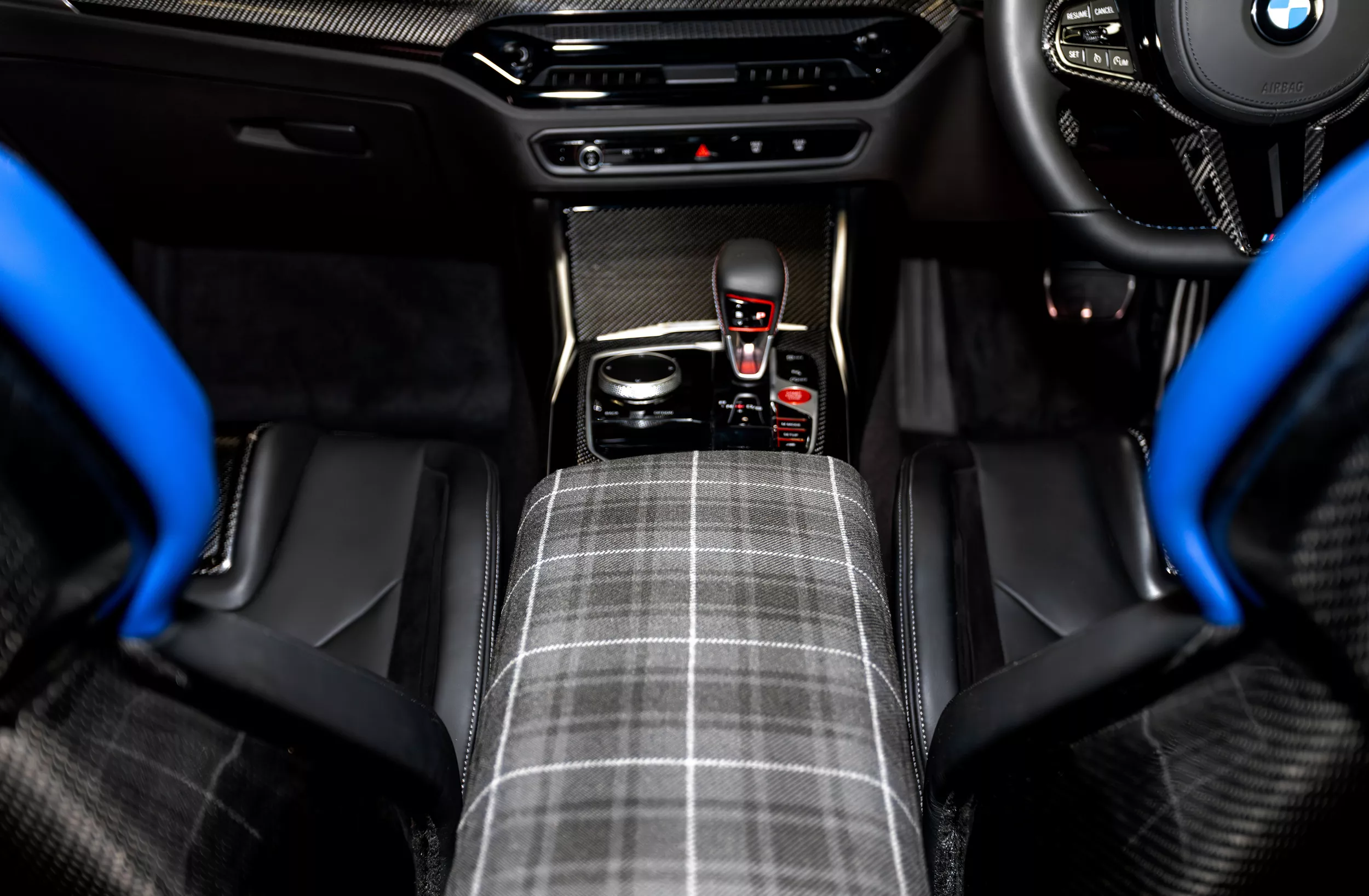 في المقصورة الداخلية، تمزج بي إم دبليو بين الفخامة والحنين إلى الماضي. المقاعد الرياضية مزينة بخياطة متباينة، في حين تم تزويد مسند الذراع بقماش Überkaro tartan الشهير الذي كان يزين مقصورات طرازات مثل 318iS و320iS و325iS في الماضي. كما تتضمن المقصورة لوحة تذكارية محفور عليها “Born for the Track” وعبارة “Specially Crafted for South Africa”، في إشارة إلى خصوصية هذا الإصدار.
