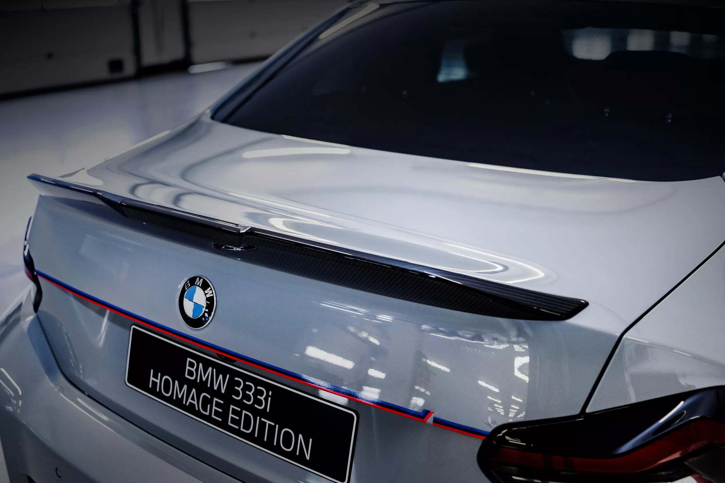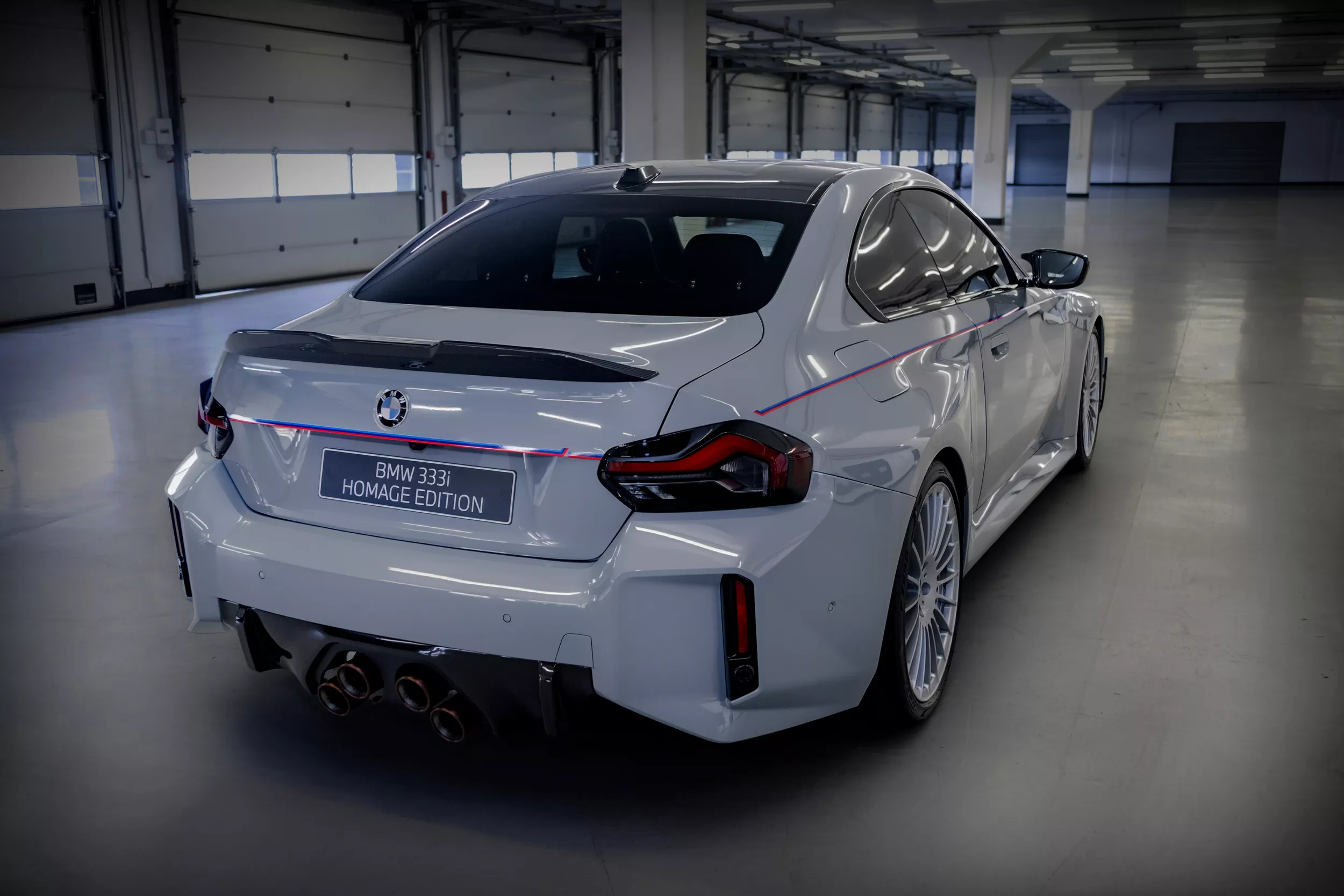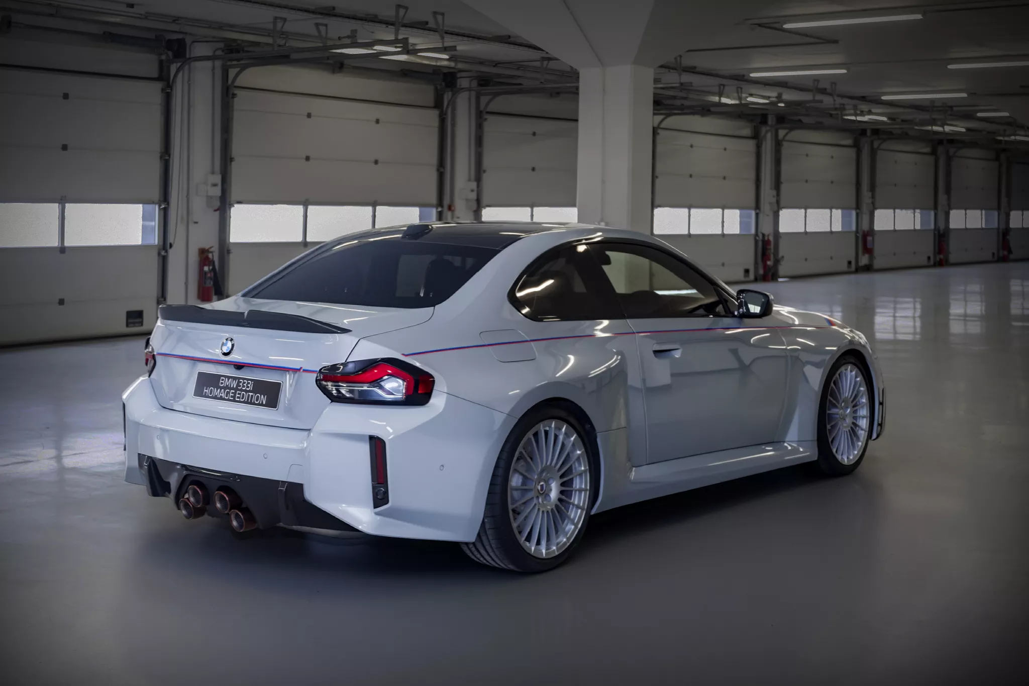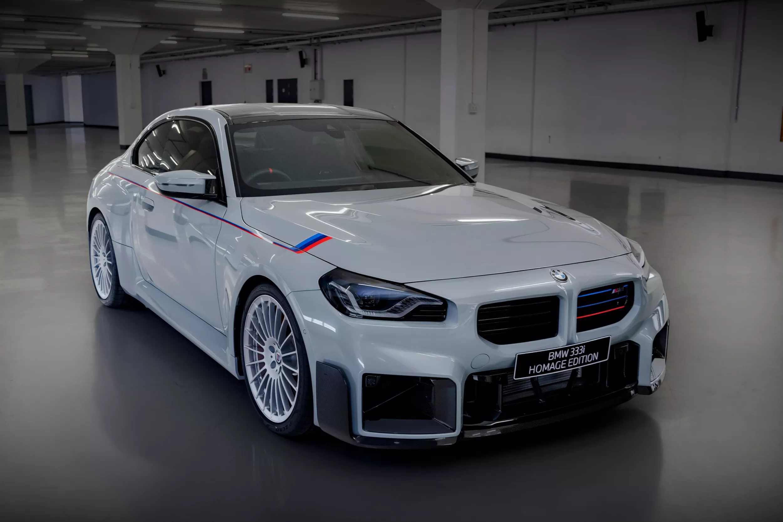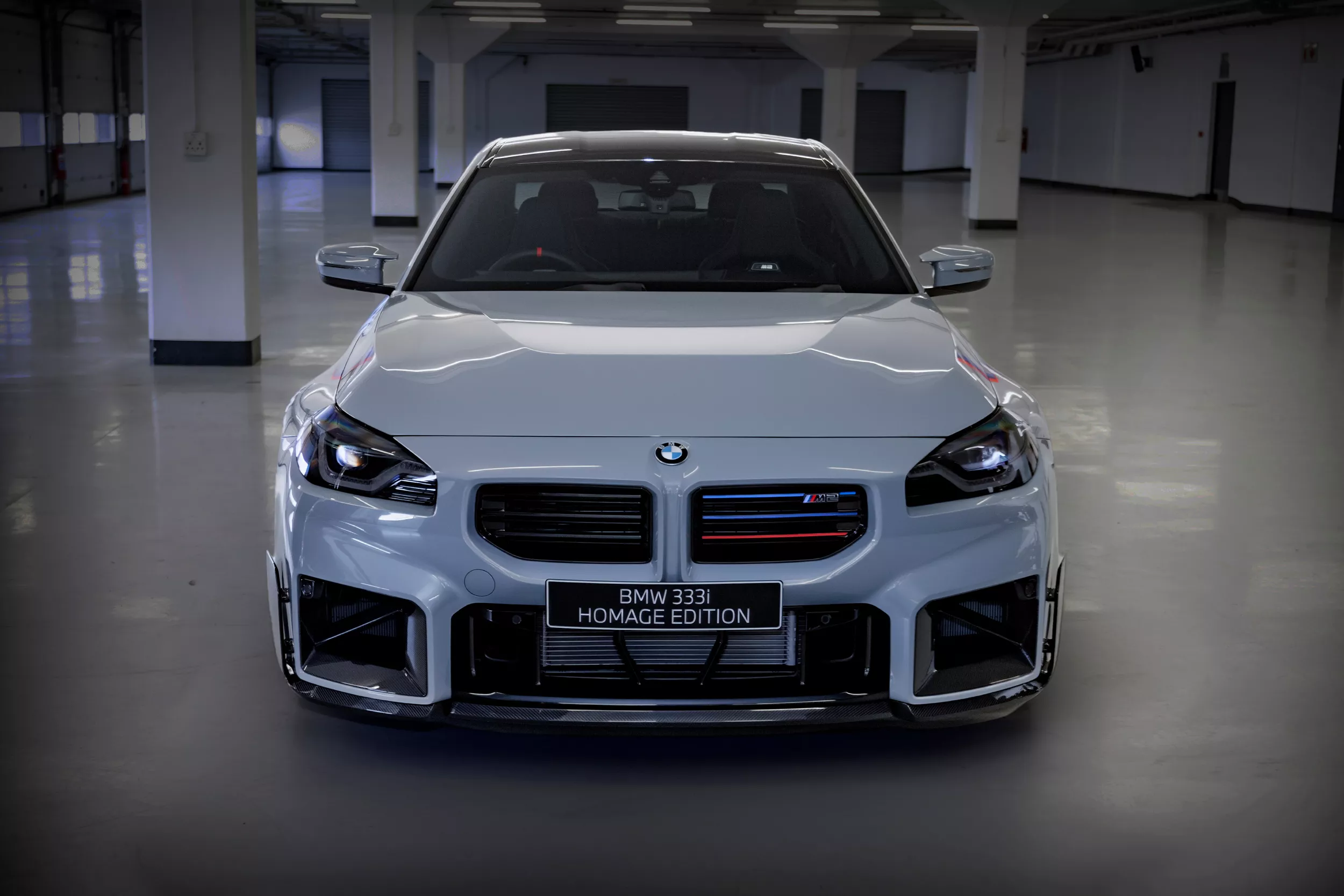 أما الإصدار الثاني 333i Homage فيعتمد على طراز BMW M2 ويقدم تجربة قيادة أكثر تطرفًا وقوة. يتميز التصميم الخارجي برسومات مستوحاة من حقبة الثمانينات مع جناح خلفي ومشتت هواء مصنوعين من ألياف الكربون، إضافة إلى نظام عادم رباعي من M Performance يمنح السيارة حضورًا قويًا وصوتًا ميكانيكيًا مميزًا.